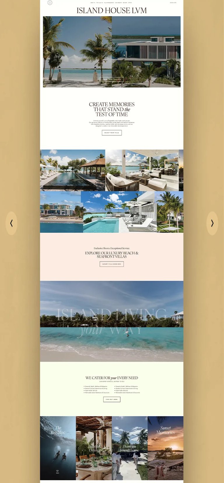 Island House LVM, a premier luxury villa rental and management company based in Turks & Caicos, sought to refine its digital presence to better embody the high-end, aspirational lifestyle associated with their exclusive properties. Our mandate was to execute a mini-refresh of the core online experience, focusing on the website's homepage and global aesthetic elements. The goal was a substantial shift from a service-centric presentation to an immersive, experience-led digital portfolio, positioning Island House LVM distinctly within the competitive luxury travel market.