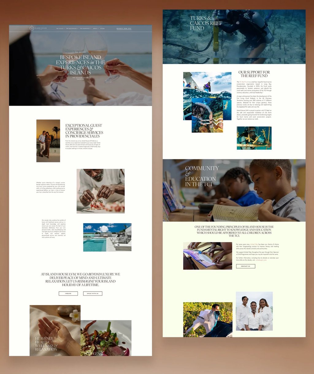 A BESPOKE DIGITAL ARCHITECTURE (UX + VISUALS + VIDEO) We moved away from a fragmented, service-heavy layout to a unified, experience-first digital ecosystem. The architecture was designed to prioritise the guest journey, ensuring that the luxury villa portfolio and the Turks & Caicos lifestyle remain the central focus across every touchpoint.